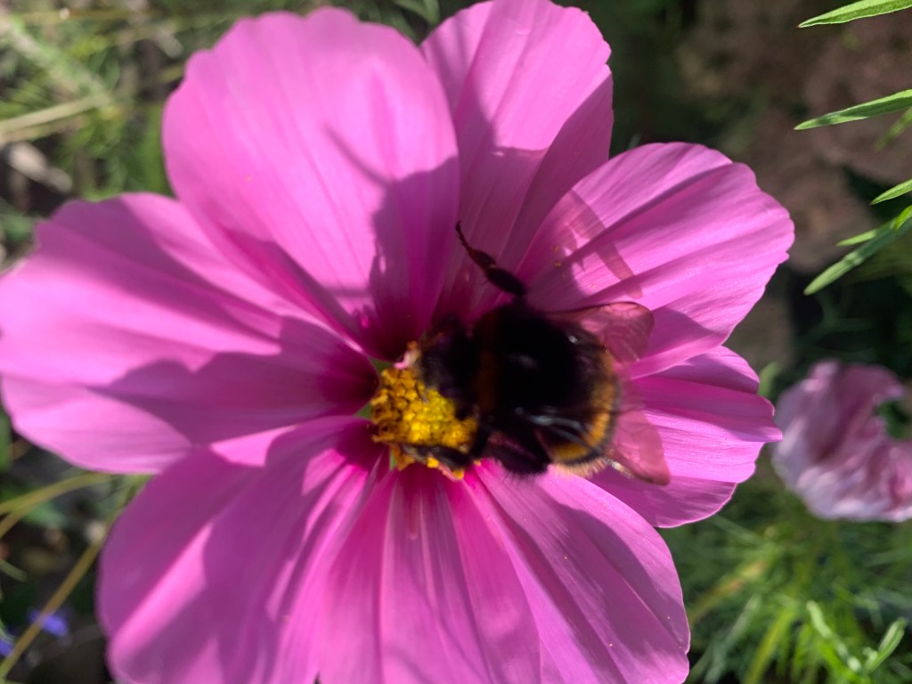 of course it’s getting near to the times when they mostly disappear for the winter but there is a bee called an ivy bee which only appears between September and November when pollen on other flowers is in short supply .